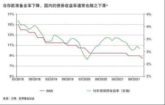 近期国内的降准可能会为2022年的货币政策立场定下基调[8],因为中国经济增长的不确定性依然存在[9]。再加上通胀走高,持有黄金的机会成本(以10年期政府债券实际收益率表示)也在不断下降。