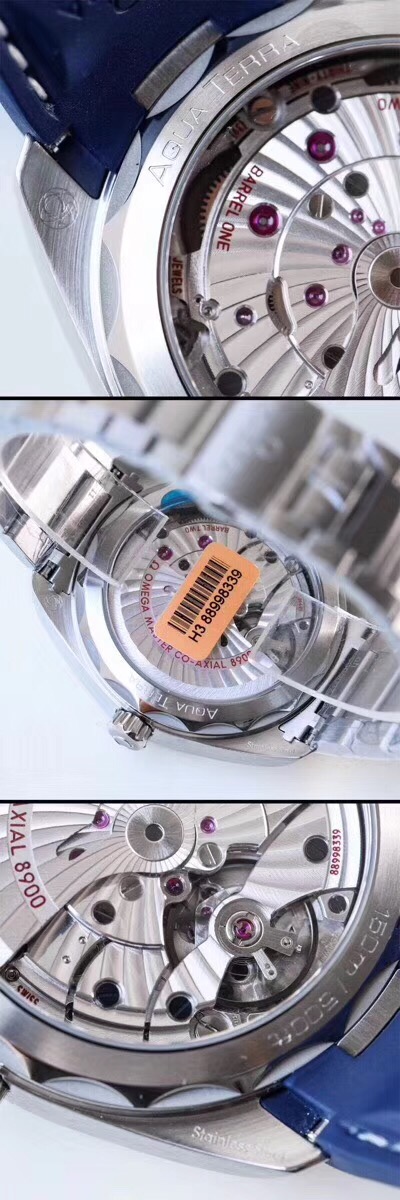 VS厂出品欧米茄海马150米柚木系列采用是8900机芯,跟正品一样,都是采用8900机芯,还有这里说一下8900机芯跟8500机芯一样,都是一体机芯,只是在摆陀上刻字不同。欧米茄海马系列机芯8400,8500,8507、8508包括8605带有GMT功能的机芯都是由8500基础机芯演化而来,也是VS的这枚8500一体机芯的亮点,虽然说采用有卡度来调节误差,区别仅此而已。并且这款腕表底盖边缘采用的是拉丝工艺,之前都是采用抛光工艺。