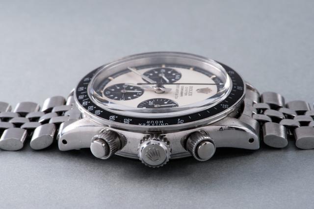 劳力士Ref.5034、Ref.6034、Ref.6234、Ref.6238、Ref.6239 1960年代,劳力士将其计时码表大改款并重新命名为Cosmograph蚝式宇宙型计时表(Ref. 6239,采用Valjoux 72机芯),其外观上的最大差异是将其时速计(Tachymeter)直接刻印在表圈(Bezel)最外围,而非在传统的表盘(Dial)上。由于Cosmograph集合了现代专业运动手表的各种性能,包括蚝式防水设计,一体成形机械机芯计时,蚝式折叠扣表带,以及可以即时知道平均圈速(Average lap speed)的表圈设计,因此迅速在赛车选手间大受欢迎,劳力士便以美国佛罗里达州的赛车胜地Daytona Beach(迪通拿海滩)为此表命名为Cosmograph Daytona(宇宙计时迪通拿)。另有一较为可信的说法是Daytnoa得名的由来,来自另一段典故:当劳力士装配出Cosmograph蚝式宇宙型计时表后,正适逢美国Doyona赛车赛事开幕,劳力士将Cosmograph计时码表送选竞争做大会的指定计时仪器,一举获选,劳力士厂商遂将此系列命名为Daytona(迪通拿)系列。