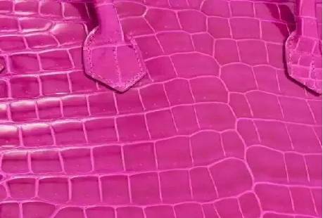 雾面婆罗洲长吻鳄,来自澳大利亚的鳄鱼养殖场,爱马仕最昂贵的一种皮质,一定要远离水。 光面Shinny Porosus Crocodile