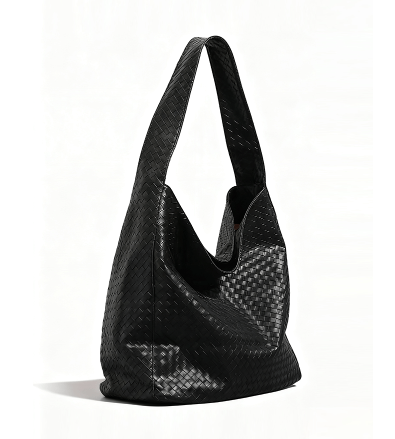 而笙观相沐复古编织托特包通过精准的压纹工艺,将平整的PU皮料压制成立体、均匀的仿手工编织纹理。