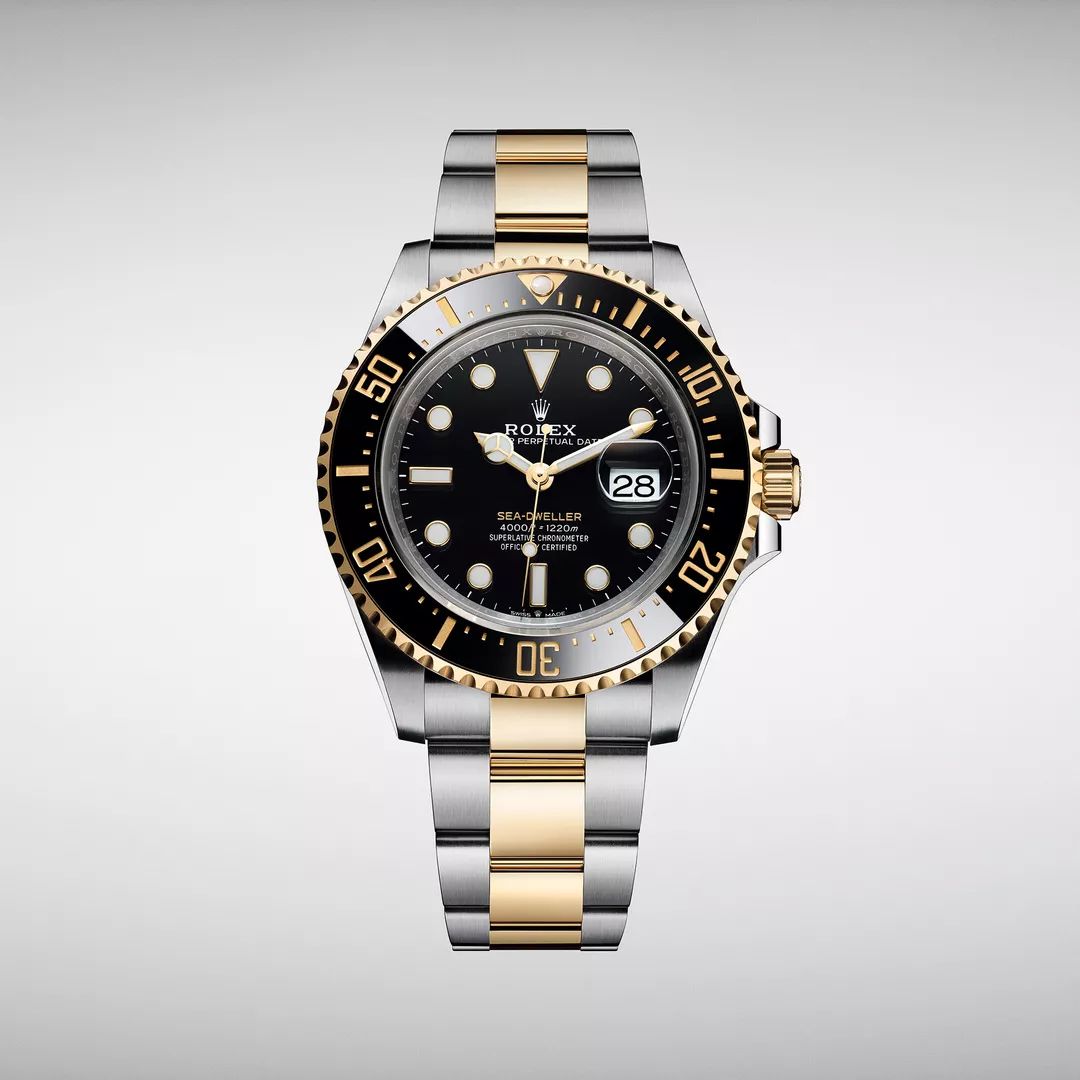 劳力士推出蚝式恒动海使型(Oyster Perpetual Sea-Dweller)黄金钢款(蚝式钢与18ct 黄金的组合)。此乃海使型系列首次采用18ct 黄金材质。“Sea-Dweller”(海使型)以黄色字体镌刻在黑色表盘上,与腕表采用的18ct 黄金相互辉映。其2017 年款,“Sea-Dweller”以红色字体镌刻在表盘上,藉此致敬首款海使型腕表。海使型配有单向旋转外圈及60 分钟刻度黑色 Cerachrom 陶质字圈,表壳及表耳两侧折射出淡雅光泽,令43 毫米蚝式表壳的轮廓更突出,倍添魅力。新款搭载制表技术领先的 3235 型机芯。一如所有劳力士腕表,新款海使型均获超卓天文台精密时计认证,保证腕表于佩戴时能发挥超卓性能。