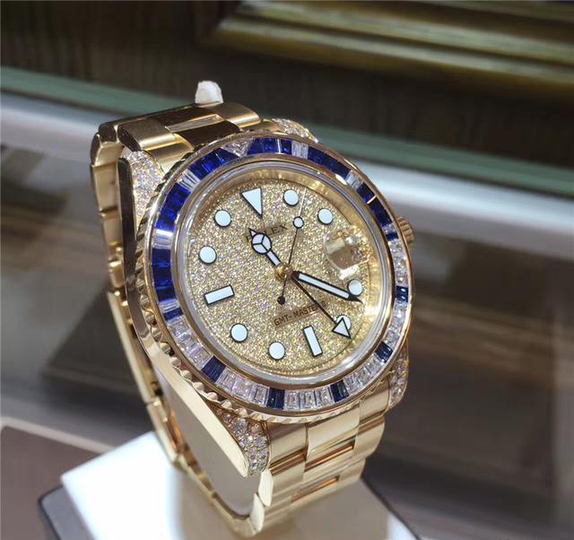 Rolex 劳力士格林尼治型II系列,116758 SA-78208密镶钻-钻带。40毫米表径,18k黄金镶钻宝石,表圈镶嵌29颗钻石,30颗蓝宝石,表耳镶钻。