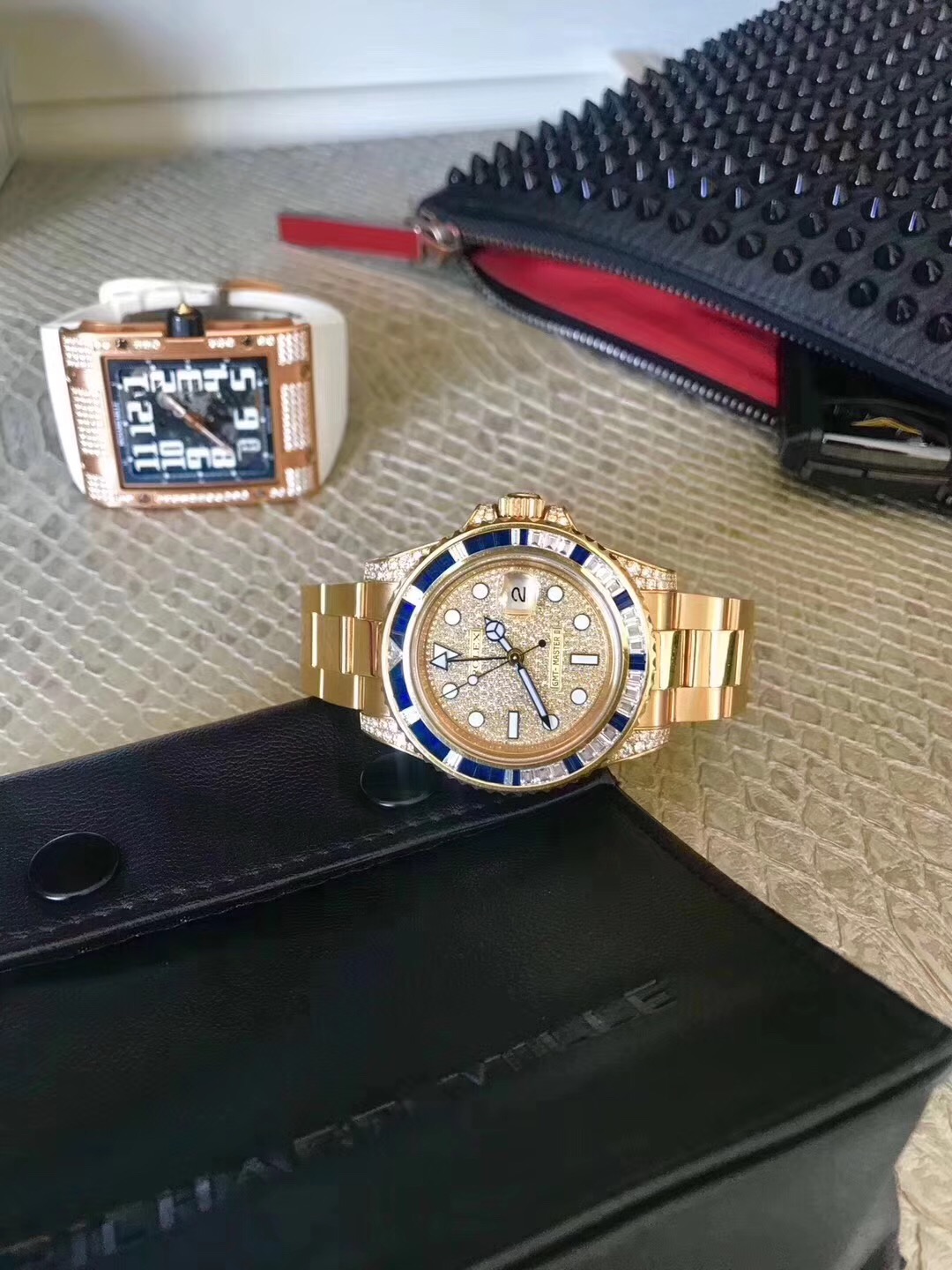 由于表圈镶满钻石,格林尼治系列独特的表圈大数字就没有了,不过这种密镶钻腕表,完全就是一件艺术品,实用性完全就可以忽略不计。