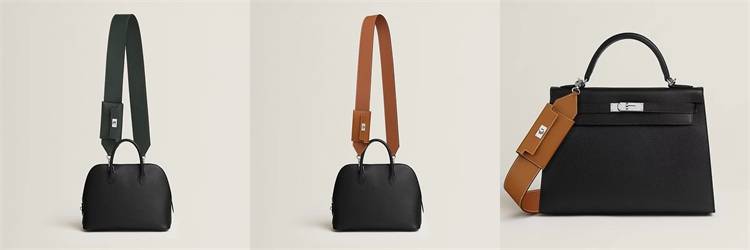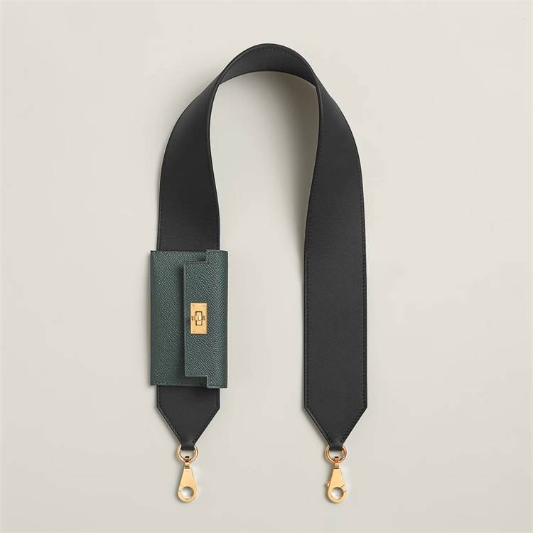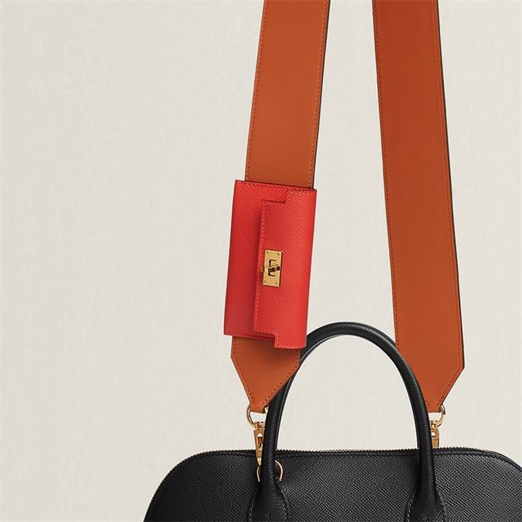 「Kelly Pocket」肩带50毫米可选金色和深绿色,爱马仕包包官网定价22,750,适用于Kelly、Bolide、24/24 - 29、Hermès Clic H和New Drag 22包袋,其可混搭于各种包款之上的特质,绝对能满足许多女孩搭配的需求。