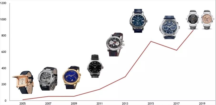 拍卖是二手市场的一小部分,数量真的非常小,几大行一年加起来也就几千枚,相比瑞士千万级别的年产量微不足道,但拍卖会上却时常会有钟表神话诞生。