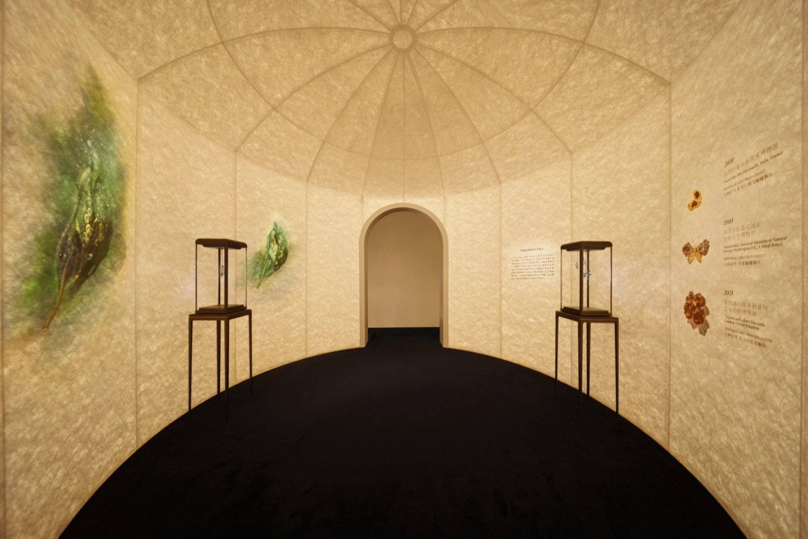 该品牌创始人、珠宝艺术家Cindy Chao以游牧民族可移动的蒙古包为灵感,结合其本人创作中不断演化的“根脉”意象,打造出这一大型建筑艺术装置,陈列于上海展览中心二层中心空间。